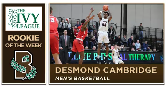 Providence, R.I. – Brown freshman forward Desmond Cambridge (Nashville, TN) was named the Ivy League Rookie of the Week after he made a big splash in his collegiate debut, scoring 15 points in Brown's 106-78 season opening win over Johnson & Wales.