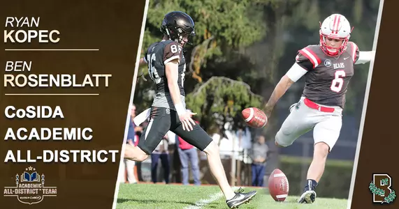 Providence, R.I. - Brown University senior kicker Ben Rosenblatt (Newton Center, MA) and junior punter Ryan Kopec (Alpharetta, GA) have been selected to the CoSIDA 2017 Academic All-District Football Team. Both names will be placed on the national ballot for Academic All-American consideration.